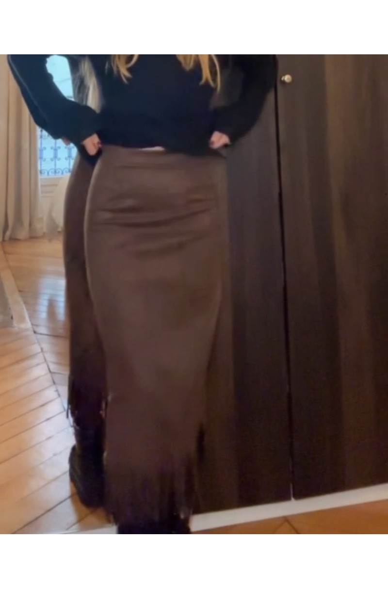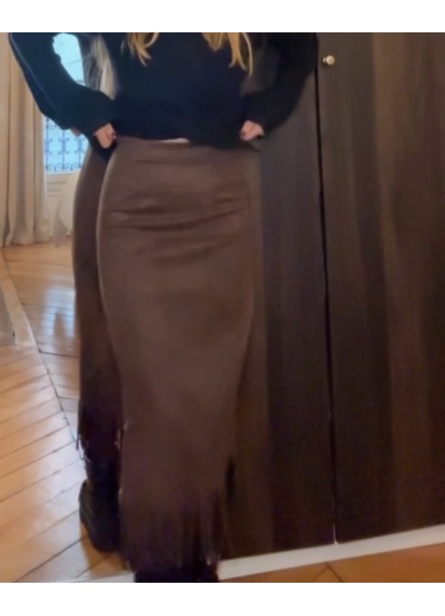 JUPE LONGUE A FRANGE STYLE DAIM