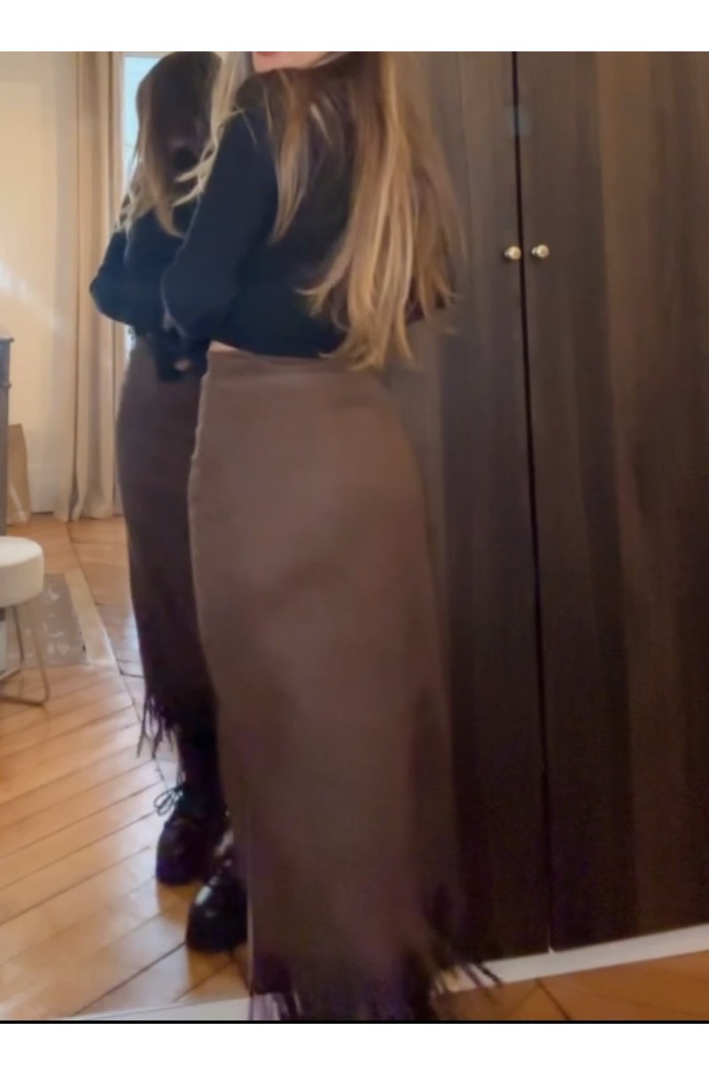 • JUPE LONGUE A FRANGE STYLE DAIM